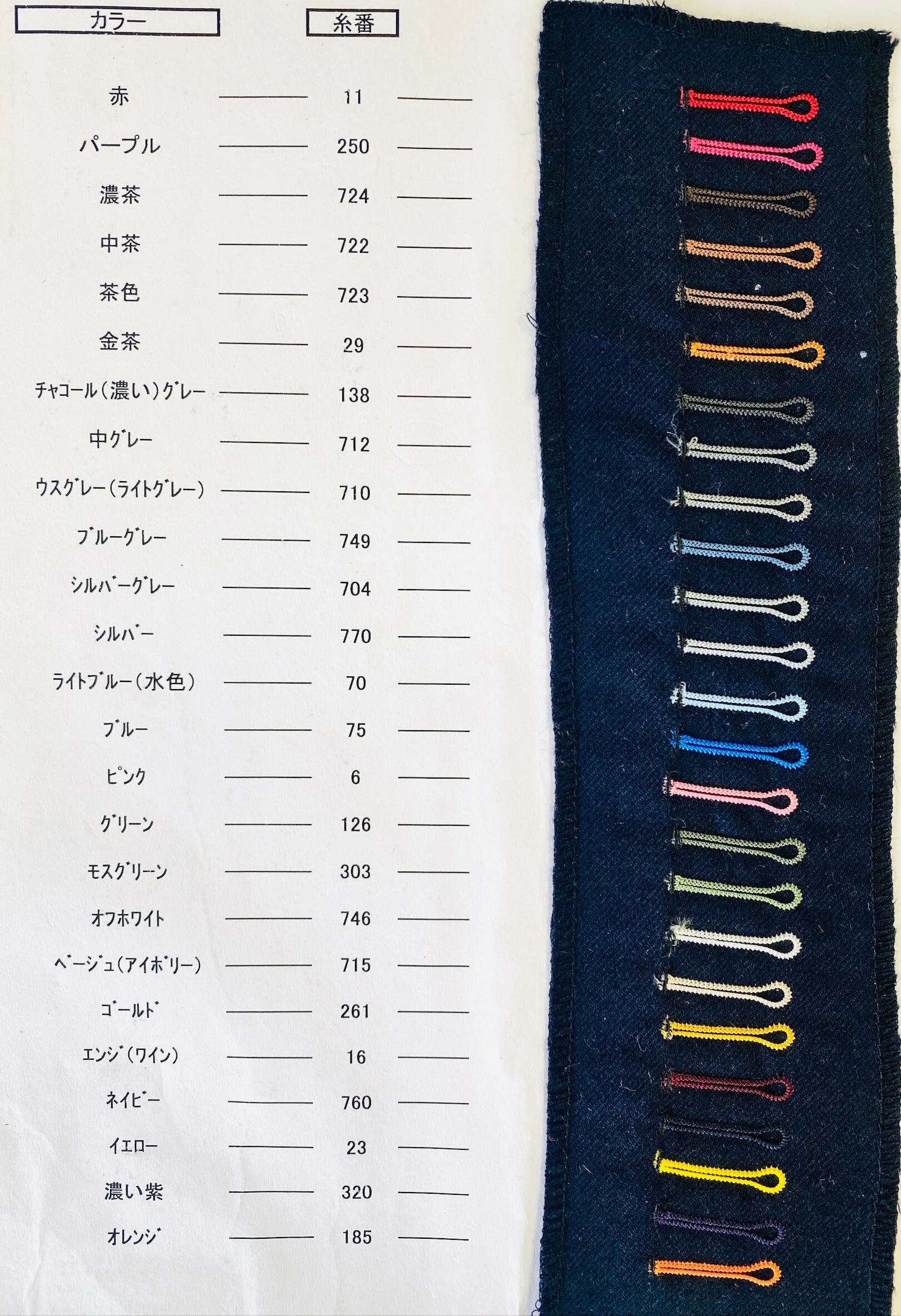 カラーは糸カラーサンプルからお好きな色をお選びいただけます。
